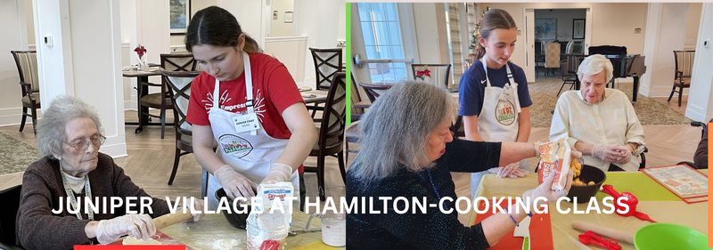 - Juniper Village at Hamilton Holiday Cooking Class – Our Junior Chefs volunteered their time to cook alongside the residents of Juniper Assisted Living, making butternut squash soup and honey butter biscuits. Moments like these remind us that cooking is about more than recipes—it’s about connection, kindness, and giving back to our community.