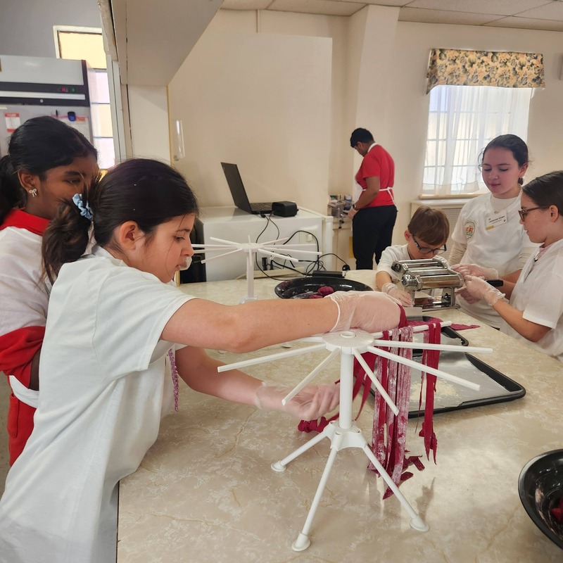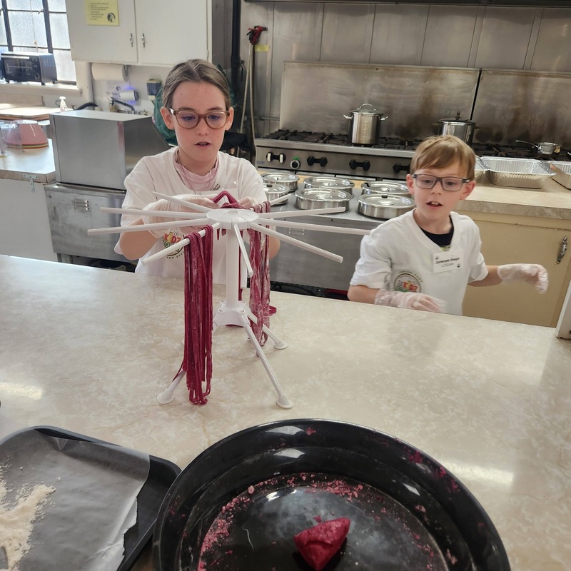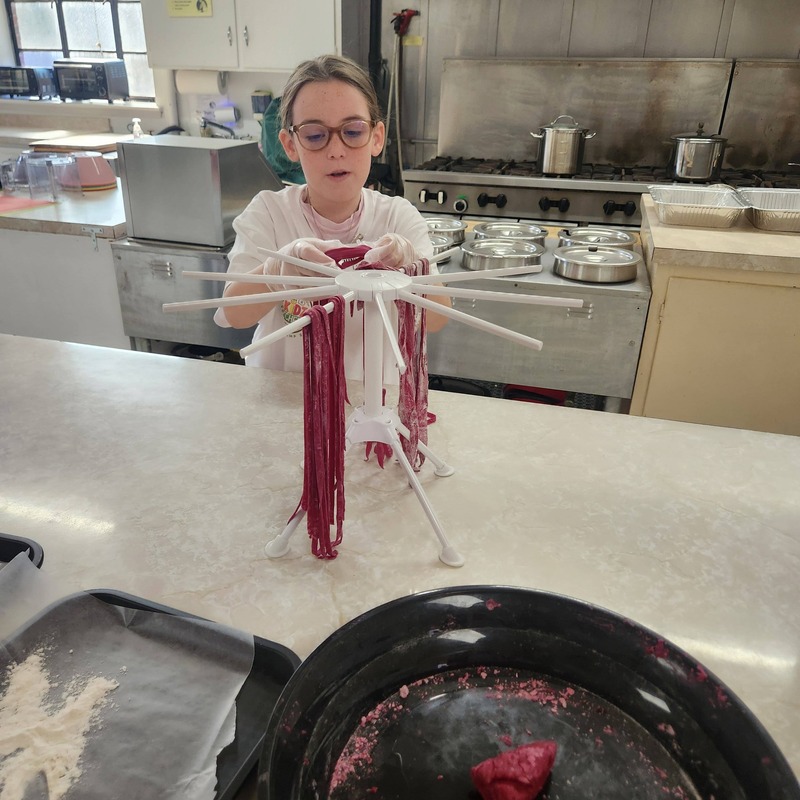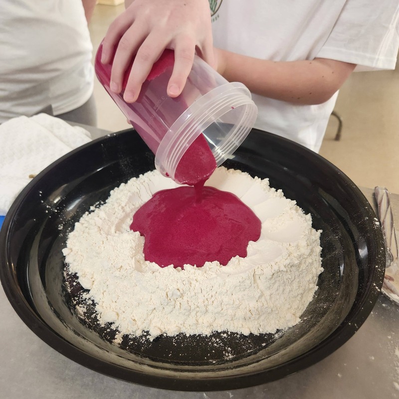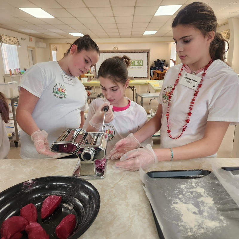Our Valentine’s Day Camp was filled with sweet treats, savory skills, and so much heart. From scratch-made **beetroot pasta** (hello, naturally pink noodles!) to the dreamiest strawberry shortcakes, our students truly *poured their hearts* into every step. We kneaded dough with care, cracked eggs with confidence, measured with precision, and used manual pasta makers like true chefs. As we worked the dough, we talked about how **gluten bonds are formed** and explored vocabulary like *translucent*, *elasticity*, and *pliable*. Watching them see (and feel!) how dough transforms as those gluten strands develop was pure kitchen magic.