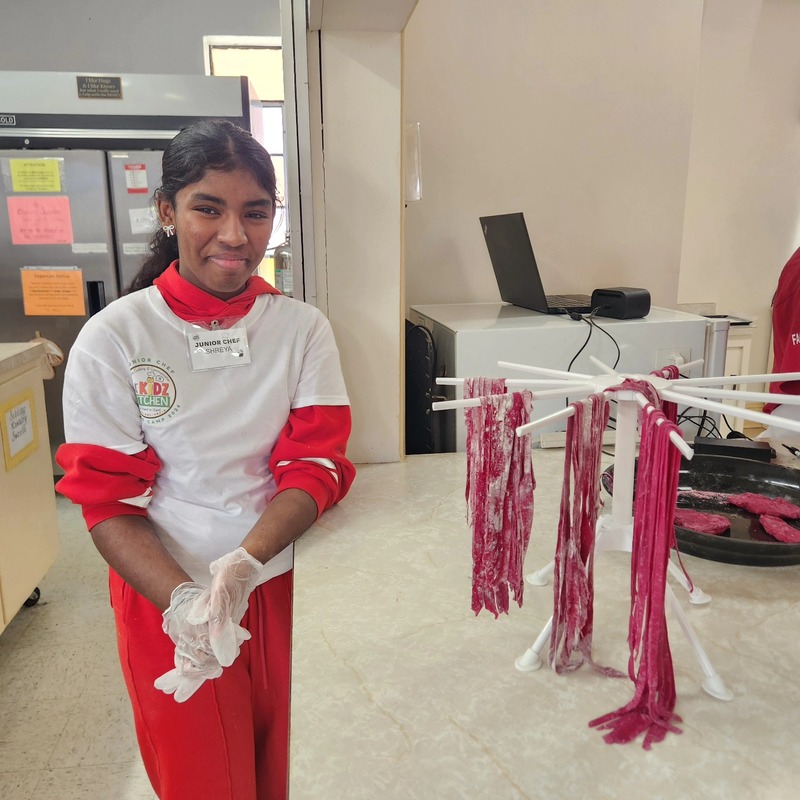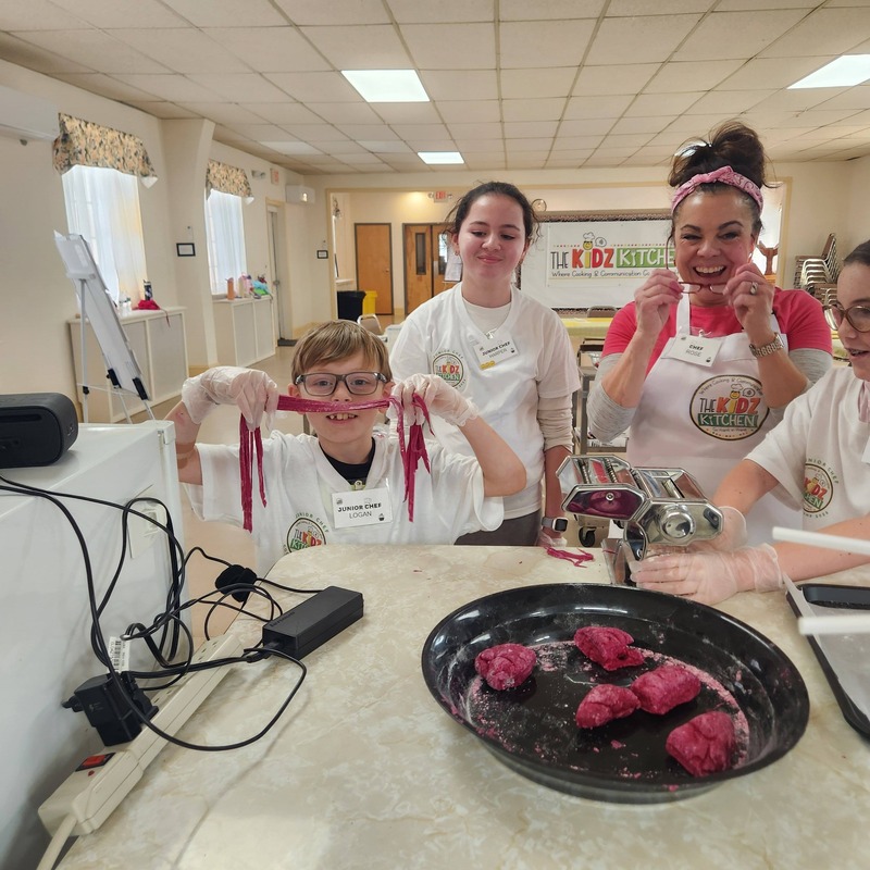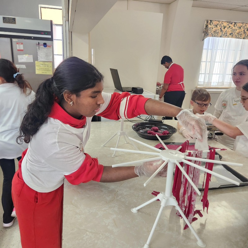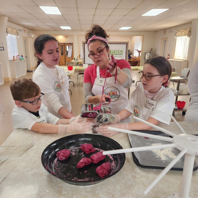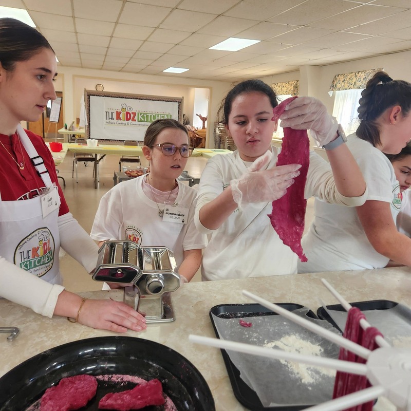 Our Valentine’s Day Camp was filled with sweet treats, savory skills, and so much heart. From scratch-made **beetroot pasta** (hello, naturally pink noodles!) to the dreamiest strawberry shortcakes, our students truly *poured their hearts* into every step. We kneaded dough with care, cracked eggs with confidence, measured with precision, and used manual pasta makers like true chefs. As we worked the dough, we talked about how **gluten bonds are formed** and explored vocabulary like *translucent*, *elasticity*, and *pliable*. Watching them see (and feel!) how dough transforms as those gluten strands develop was pure kitchen magic.