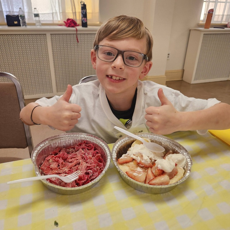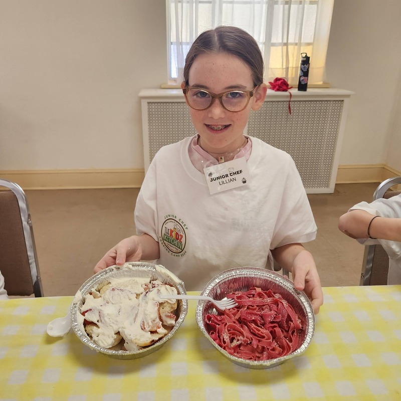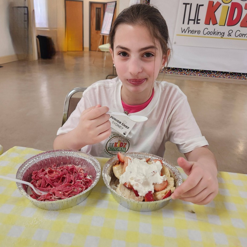 Our strawberry shortcakes were the perfect sweet finale. Students practiced knife skills while slicing strawberries, measured ingredients carefully for shortbread, and whipped up fluffy Chantilly cream with electric mixers. From macerating berries to mixing and assembling, every step was a chance to build confidence, coordination, and communication. Happy Valentine’s Day from our Kidz Kitchen family to yours!